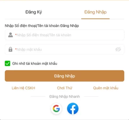 • Nhấn nút “Đăng Nhập” trên màn hình chính.